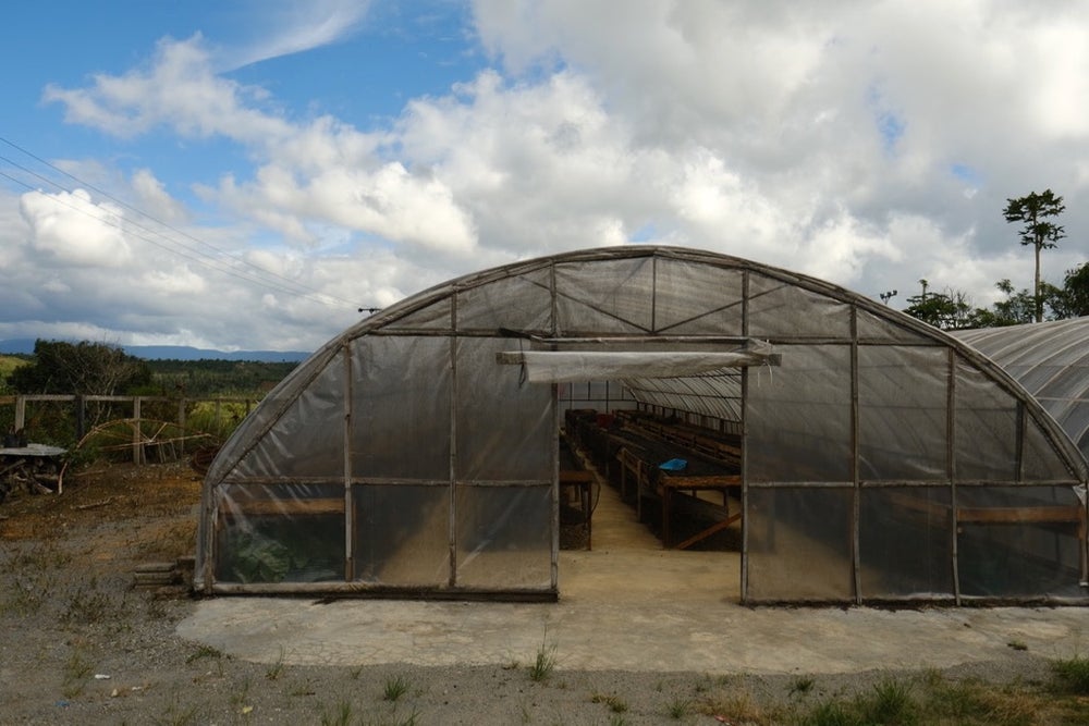 Cherry is handpicked on member farms. Upon delivery to the cooperative wet mill, the cherry undergoes a rigorous selection process. Cherry is then laid to dry on raised beds in greenhouses.