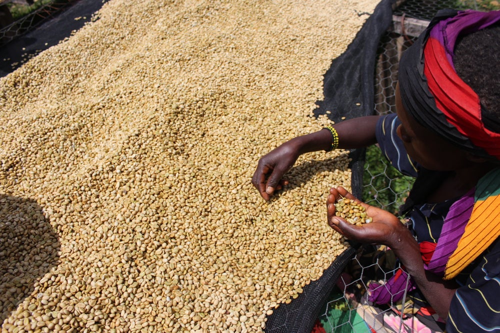 Parchment is laid on raised beds to dry. While drying, parchment is repeatedly sorted and sifted to ensure even drying. Parchment is left to dry from sunrise to sunset and is covered with a sheet during the evening or when it rains. If the weather conditions are good, the parchment takes on average 10 to 14 days to dry. The moisture level is carefully monitored and any parchment with visual defects is removed.