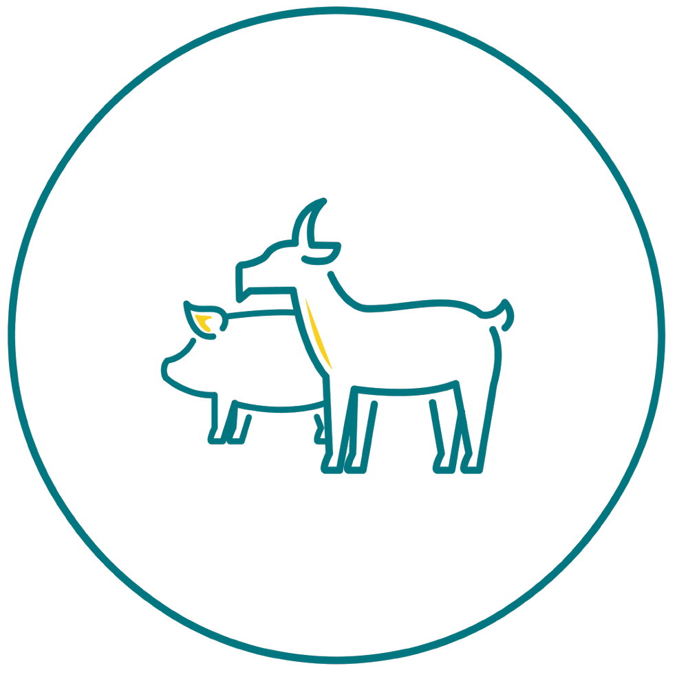 Goats and pigs are multi-functional. They are relatively easy to care for and can survive on shrubs and trees. They can have an immediate and ongoing impact since they reproduce quickly and each female can have several offspring.