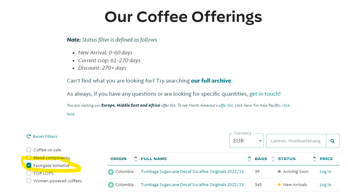 Or, sort the offer list using the “Farmgate Initiative” tag on the offerings page.